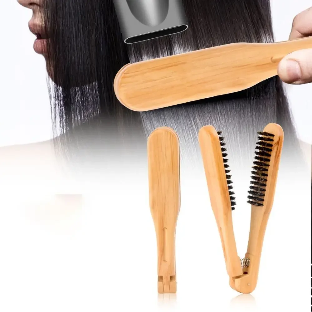 Professional Hair Straightener Comb Anti Static Double Brushes Hairdressing Comb Wooden Hair Straightener Tool